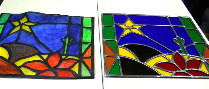 Réalisation d’un petit vitrail au plomb ou Tiffany sur 1 journée (de 10h à 17h00 avec une pause déjeuner). Petit groupe de maximum 4 personnes.